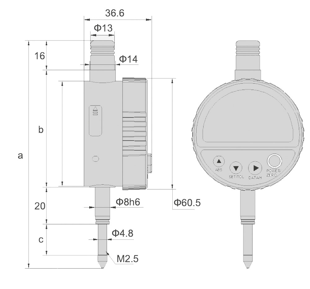 - mit EIN/AUS/NULL-, ABS-, SET/TOL-, HOLD-Taste